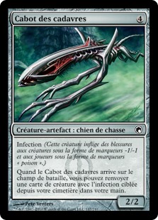 | Rules | Infect (This creature deals damage to creatures in the form of -1/-1 counters and to players in the form of poison counters.) When Corpse Cur enters the battlefield, you may return target creature card with infect from your graveyard to your hand. |