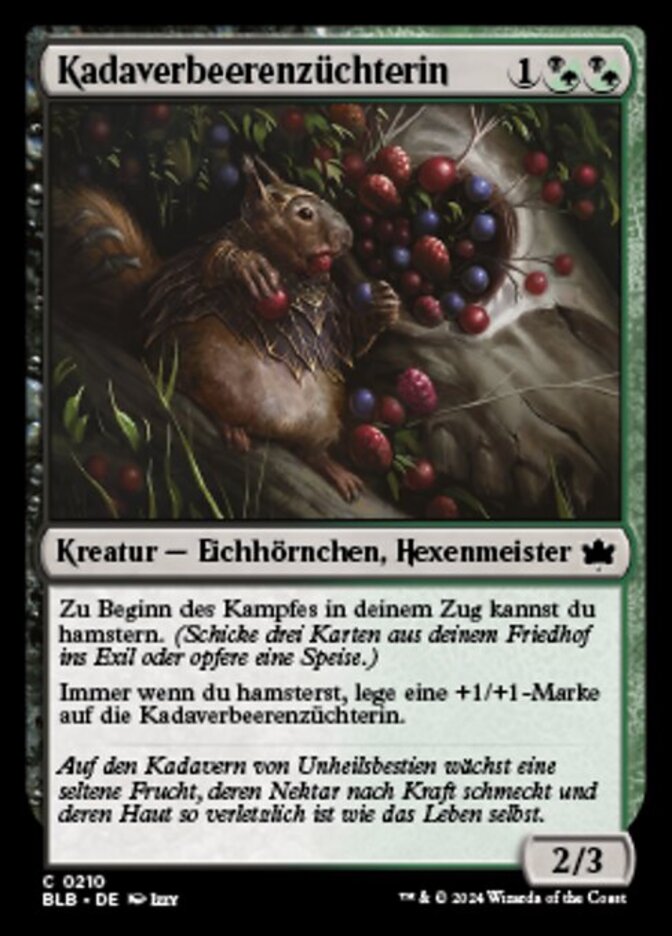 | Rules | At the beginning of combat on your turn, you may forage. (Exile three cards from your graveyard or sacrifice a Food.) Whenever you forage, put a +1/+1 counter on Corpseberry Cultivator. |