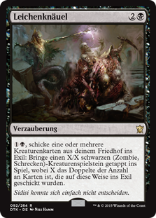 | Rules | , Exile one or more creature cards from your graveyard: Create a tapped X/X black Zombie Horror creature token, where X is twice the number of cards exiled this way. |