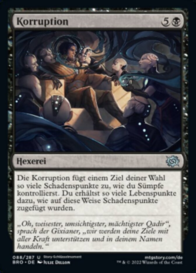 | Rules | Corrupt deals damage to any target equal to the number of Swamps you control. You gain life equal to the damage dealt this way. |