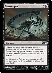Rules Corrupt deals damage to any target equal to the number of Swamps you control. You gain life equal to the damage dealt this way.
