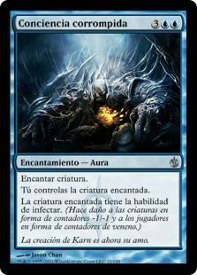 Enchanted creature has infect. (It deals damage to creatures in the form of -1/-1 counters and to players in the form of poison counters.)