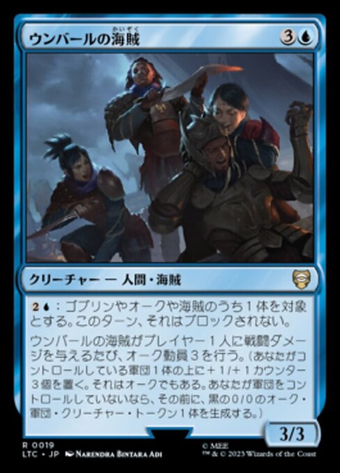 | Rules | : Target Goblin, Orc, or Pirate can't be blocked this turn. Whenever Corsairs of Umbar deals combat damage to a player, amass Orcs 3. (Put three +1/+1 counters on an Army you control. It's also an Orc. If you don't control an Army, create a 0/0 black Orc Army creature token first.) |