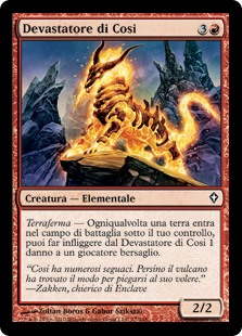 | Rules | Landfall — Whenever a land enters the battlefield under your control, you may have Cosi's Ravager deal 1 damage to target player or planeswalker. |