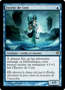 | Rules | Whenever an opponent shuffles their library, you may put a +1/+1 counter on Cosi's Trickster. |