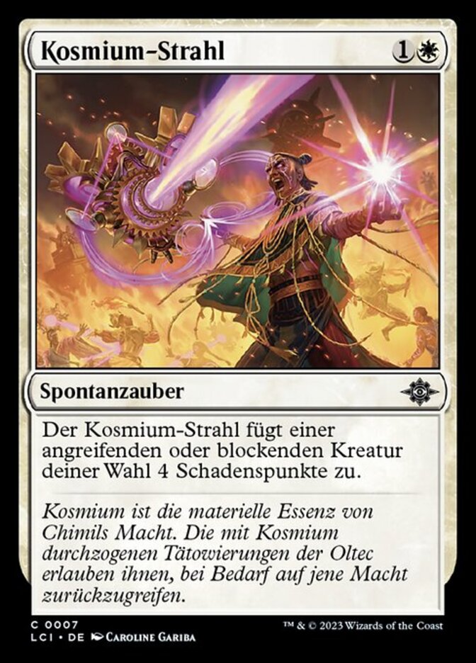 | Rules | Cosmium Blast deals 4 damage to target attacking or blocking creature. |