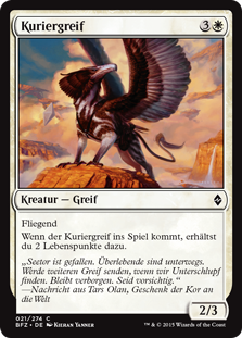| Rules | Flying When Courier Griffin enters the battlefield, you gain 2 life. |