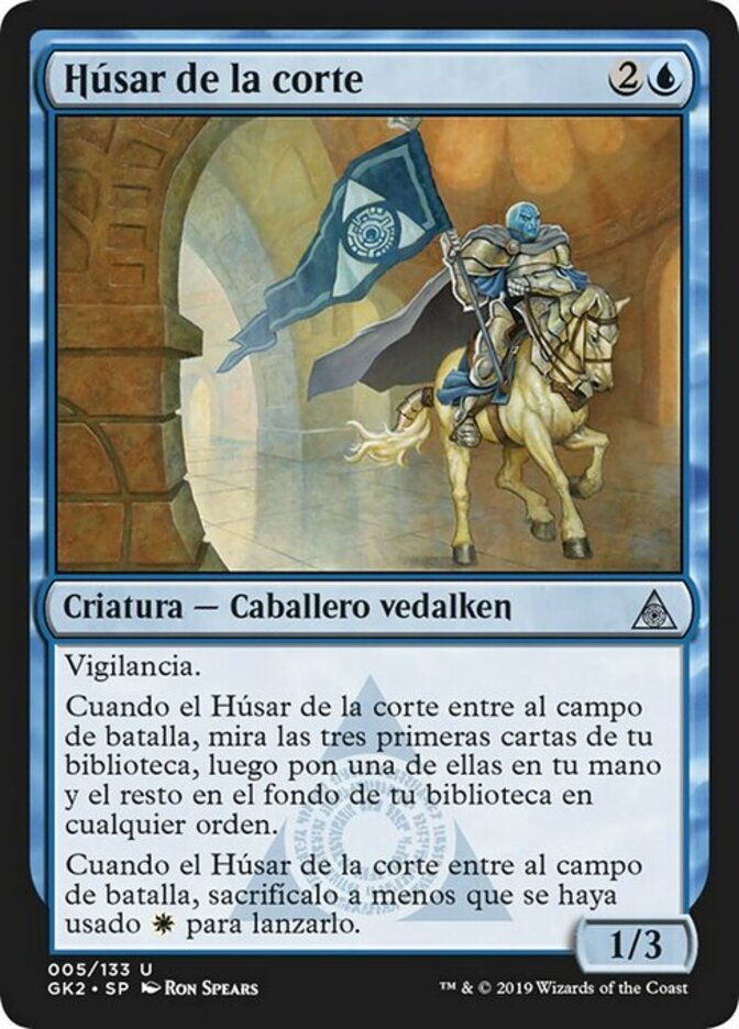 | Rules | Vigilance When Court Hussar enters the battlefield, look at the top three cards of your library, then put one of them into your hand and the rest on the bottom of your library in any order. When Court Hussar enters the battlefield, sacrifice it unless was spent to cast it. |