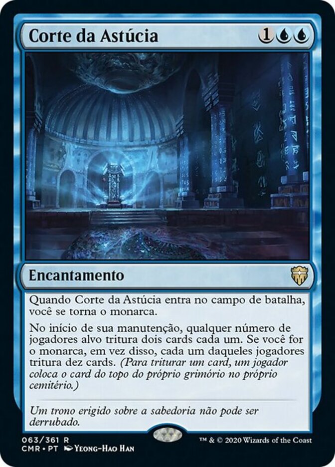 | Rules | When Court of Cunning enters the battlefield, you become the monarch. At the beginning of your upkeep, any number of target players each mill two cards. If you're the monarch, each of those players mills ten cards instead. (To mill a card, a player puts the top card of their library into their graveyard.) |