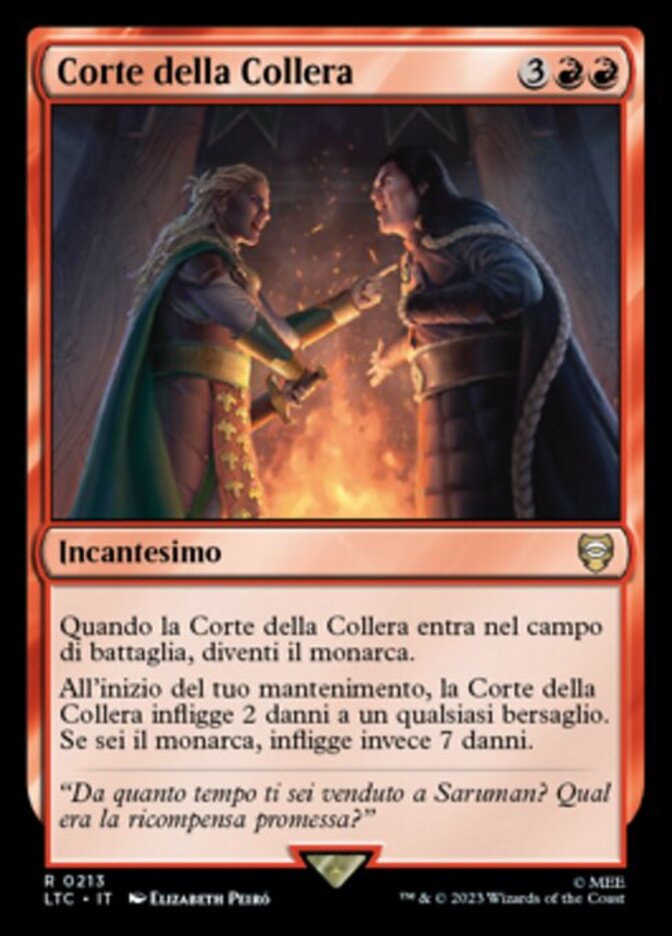 | Rules | When Court of Ire enters the battlefield, you become the monarch. At the beginning of your upkeep, Court of Ire deals 2 damage to any target. If you're the monarch, it deals 7 damage instead. |