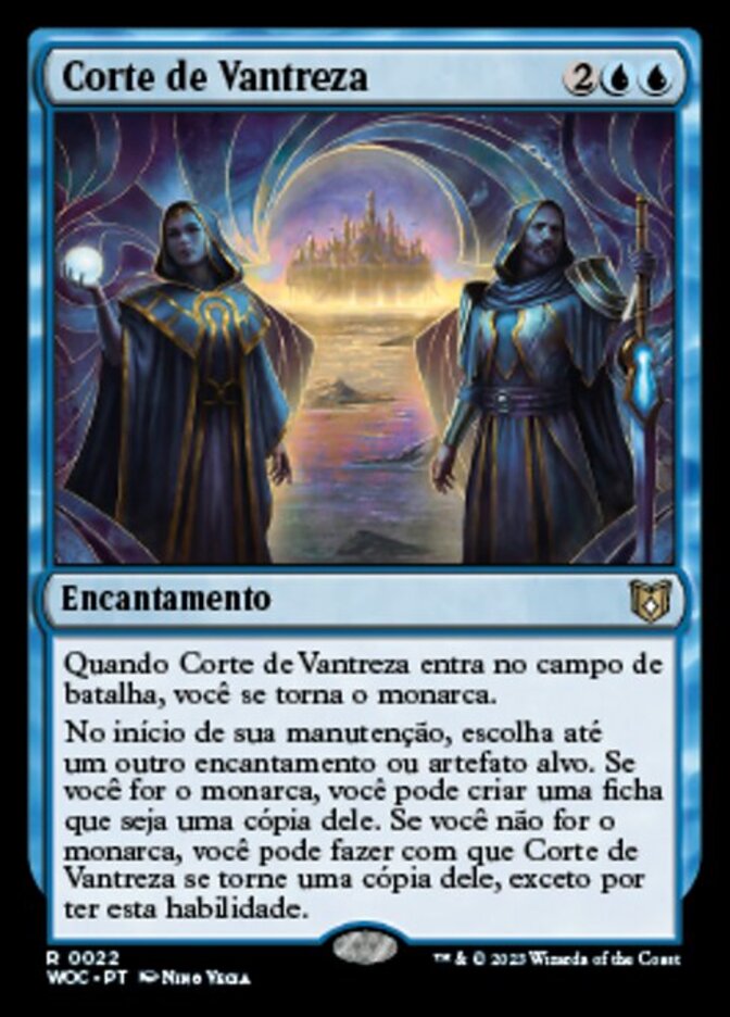 | Rules | When Court of Vantress enters the battlefield, you become the monarch. At the beginning of your upkeep, choose up to one other target enchantment or artifact. If you're the monarch, you may create a token that's a copy of it. If you're not the monarch, you may have Court of Vantress become a copy of it, except it has this ability. |