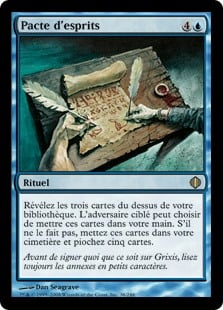 | Rules | Reveal the top three cards of your library. Target opponent may choose to put those cards into your hand. If they don't, put those cards into your graveyard and draw five cards. |