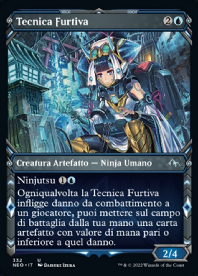 | Rules | Ninjutsu (, Return an unblocked attacker you control to hand: Put this card onto the battlefield from your hand tapped and attacking.) Whenever Covert Technician deals combat damage to a player, you may put an artifact card with mana value less than or equal to that damage from your hand onto the battlefield. |
