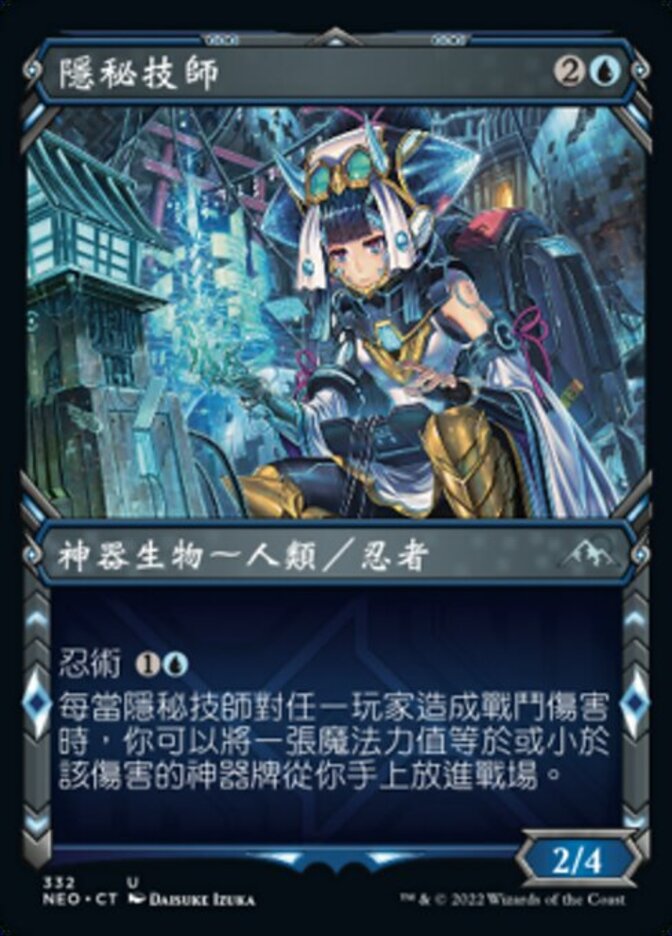 | Rules | Ninjutsu (, Return an unblocked attacker you control to hand: Put this card onto the battlefield from your hand tapped and attacking.) Whenever Covert Technician deals combat damage to a player, you may put an artifact card with mana value less than or equal to that damage from your hand onto the battlefield. |
