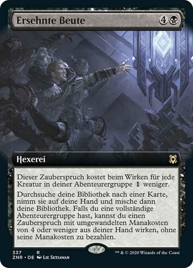 | Rules | This spell costs less to cast for each creature in your party. (Your party consists of up to one each of Cleric, Rogue, Warrior, and Wizard.) Search your library for a card, put it into your hand, then shuffle. If you have a full party, you may cast a spell with mana value 4 or less from your hand without paying its mana cost. |