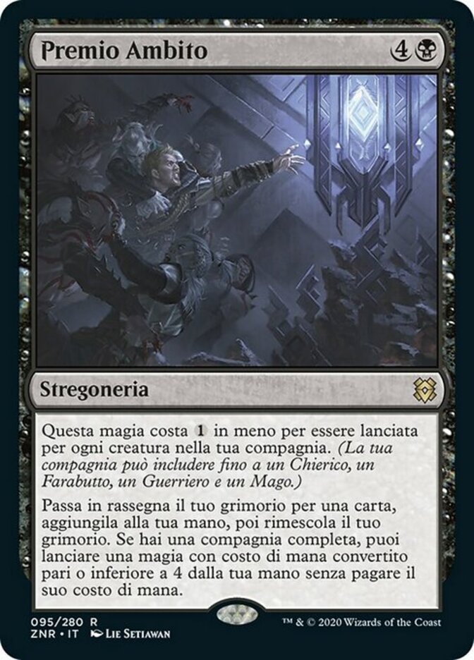 | Rules | This spell costs less to cast for each creature in your party. (Your party consists of up to one each of Cleric, Rogue, Warrior, and Wizard.) Search your library for a card, put it into your hand, then shuffle. If you have a full party, you may cast a spell with mana value 4 or less from your hand without paying its mana cost. |