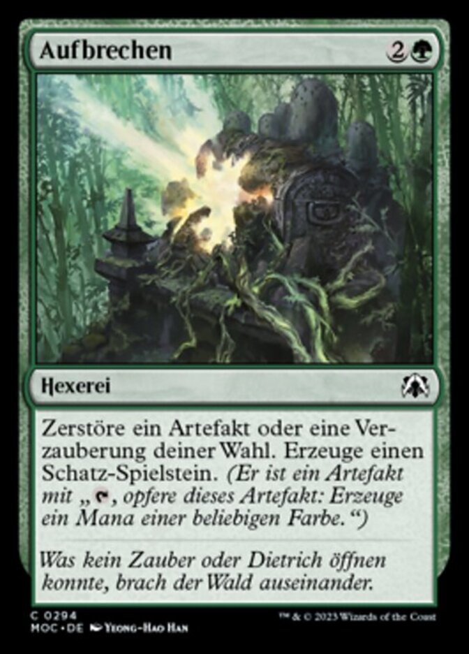 | Rules | Destroy target artifact or enchantment. Create a Treasure token. (It's an artifact with ", Sacrifice this artifact: Add one mana of any color.") |