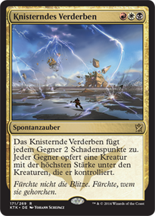| Rules | Crackling Doom deals 2 damage to each opponent. Each opponent sacrifices a creature with the greatest power among creatures that player controls. |