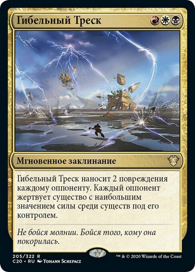 | Rules | Crackling Doom deals 2 damage to each opponent. Each opponent sacrifices a creature with the greatest power among creatures that player controls. |