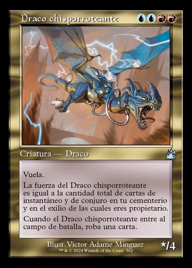 | Rules | Flying Crackling Drake's power is equal to the total number of instant and sorcery cards you own in exile and in your graveyard. When Crackling Drake enters the battlefield, draw a card. |