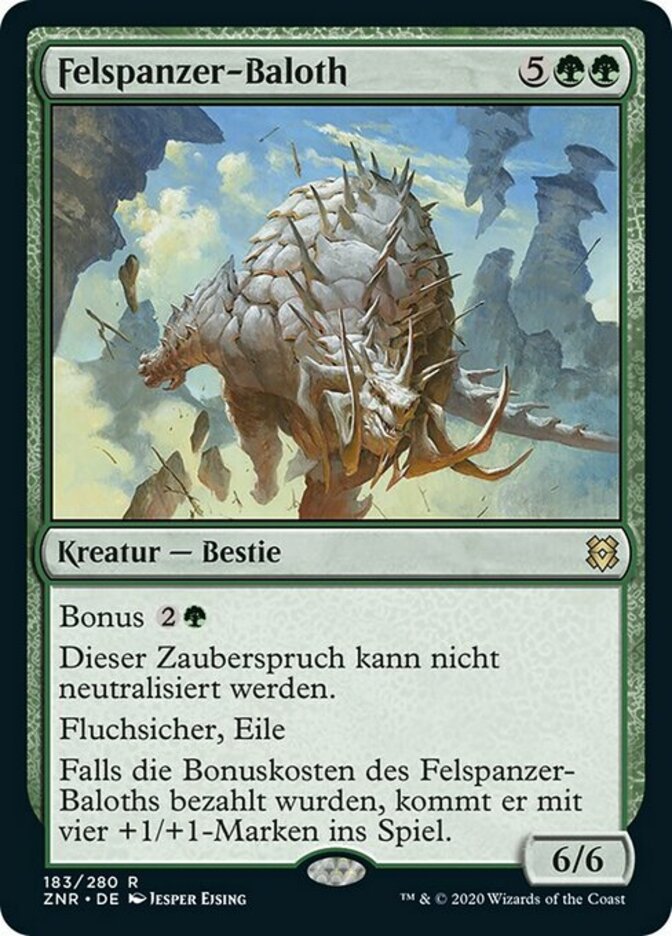 | Rules | Kicker This spell can't be countered. Hexproof, haste If Cragplate Baloth was kicked, it enters the battlefield with four +1/+1 counters on it. |
