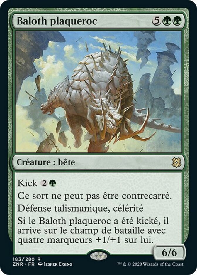 | Rules | Kicker This spell can't be countered. Hexproof, haste If Cragplate Baloth was kicked, it enters the battlefield with four +1/+1 counters on it. |