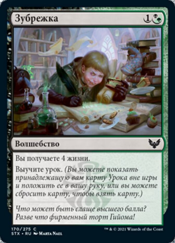 | Rules | You gain 4 life. Learn. (You may reveal a Lesson card you own from outside the game and put it into your hand, or discard a card to draw a card.) |