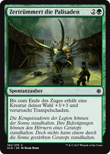 | Flavor | The Legion's conquistadors could endure Ixalan's sun. Their forts could withstand a charging ceratops. But nothing can stop a ceratops strengthened by the sun. |