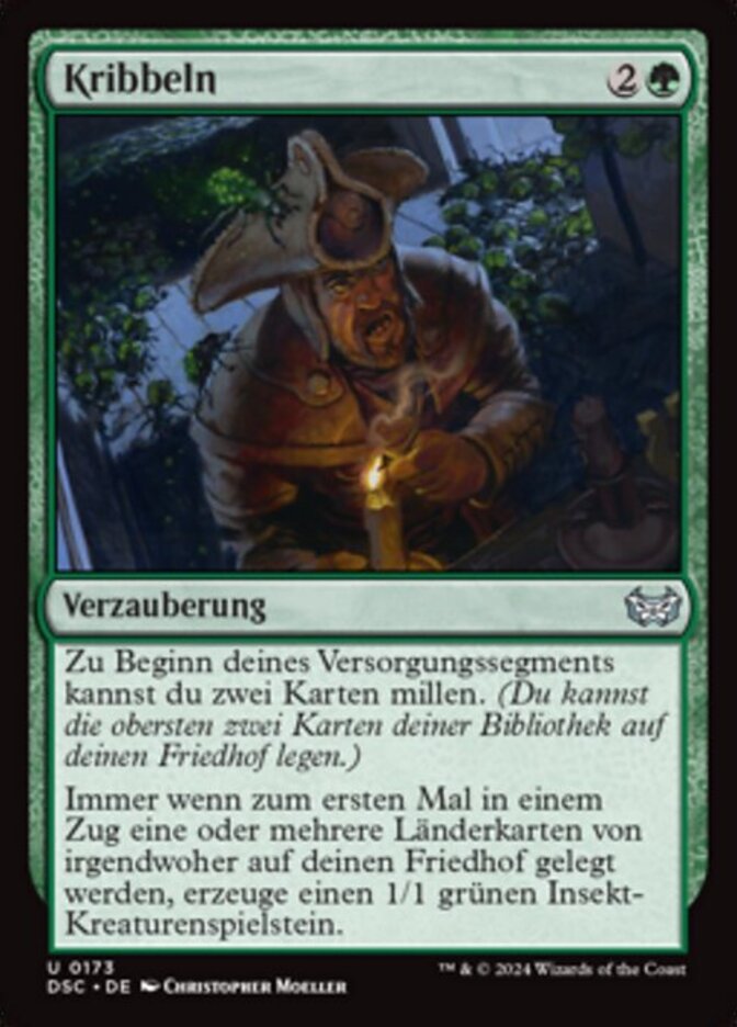| Rules | At the beginning of your upkeep, you may mill two cards. Whenever one or more land cards are put into your graveyard from anywhere for the first time each turn, create a 1/1 green Insect creature token. |