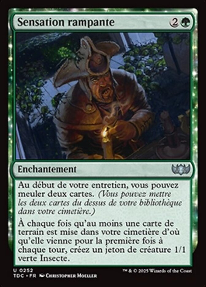 | Rules | At the beginning of your upkeep, you may mill two cards. Whenever one or more land cards are put into your graveyard from anywhere for the first time each turn, create a 1/1 green Insect creature token. |