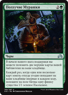 | Rules | At the beginning of your upkeep, you may mill two cards. Whenever one or more land cards are put into your graveyard from anywhere for the first time each turn, create a 1/1 green Insect creature token. |