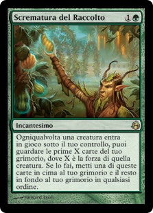 | Rules | Whenever a creature enters the battlefield under your control, you may look at the top X cards of your library, where X is that creature's power. If you do, put one of those cards on top of your library and the rest on the bottom of your library in any order. |