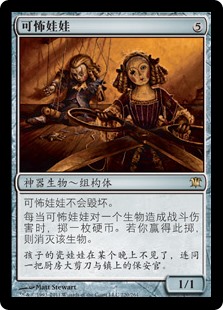| Rules | Indestructible Whenever Creepy Doll deals combat damage to a creature, flip a coin. If you win the flip, destroy that creature. |