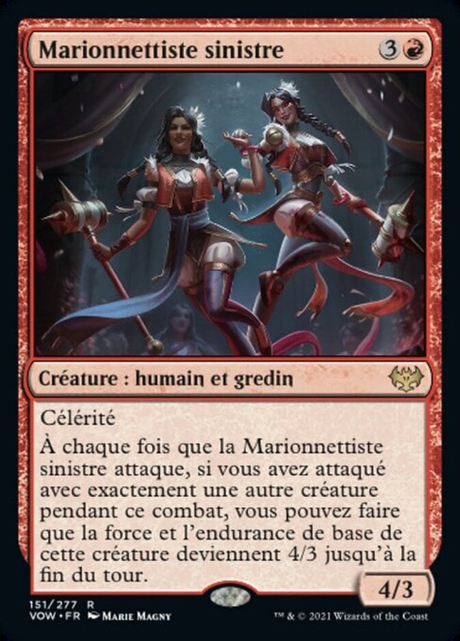 | Rules | Haste Whenever Creepy Puppeteer attacks, if you attacked with exactly one other creature this combat, you may have that creature's base power and toughness become 4/3 until end of turn. |