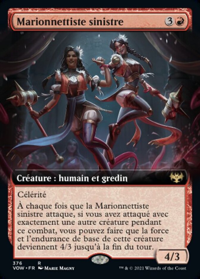 | Rules | Haste Whenever Creepy Puppeteer attacks, if you attacked with exactly one other creature this combat, you may have that creature's base power and toughness become 4/3 until end of turn. |