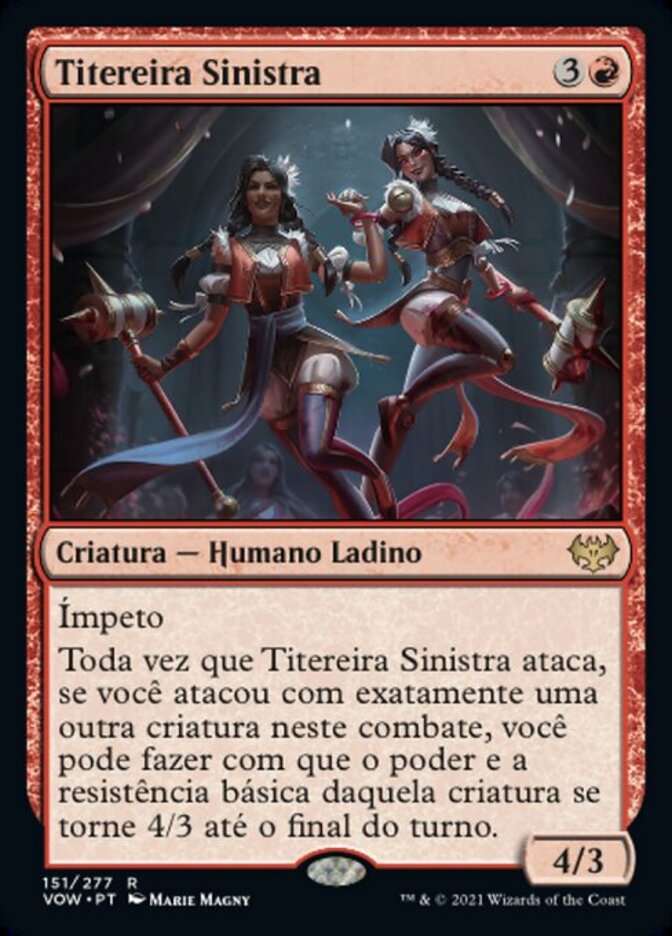 | Rules | Haste Whenever Creepy Puppeteer attacks, if you attacked with exactly one other creature this combat, you may have that creature's base power and toughness become 4/3 until end of turn. |
