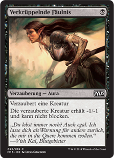 | Rules | Enchant creature Enchanted creature gets -1/-1 and can't block. |
