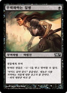 | Rules | Enchant creature Enchanted creature gets -1/-1 and can't block. |