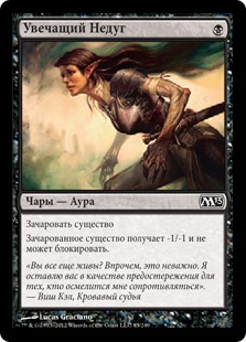 | Rules | Enchant creature Enchanted creature gets -1/-1 and can't block. |