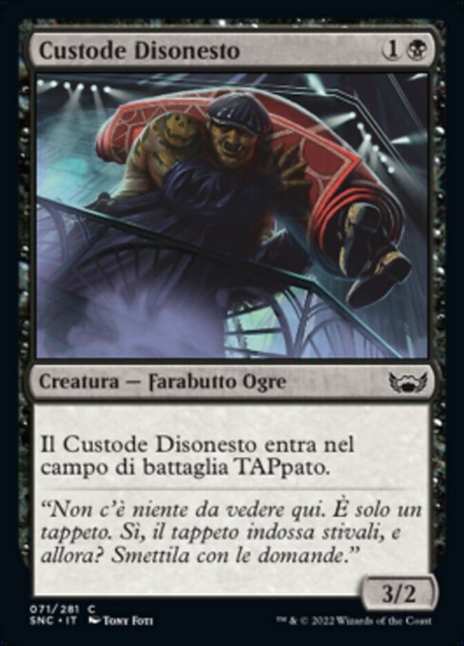 | Rules | Crooked Custodian enters the battlefield tapped. |
