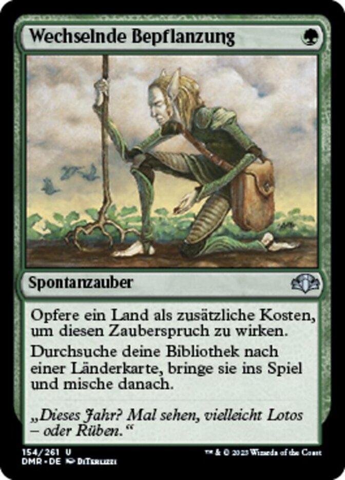 | Rules | As an additional cost to cast this spell, sacrifice a land. Search your library for a land card, put that card onto the battlefield, then shuffle. |