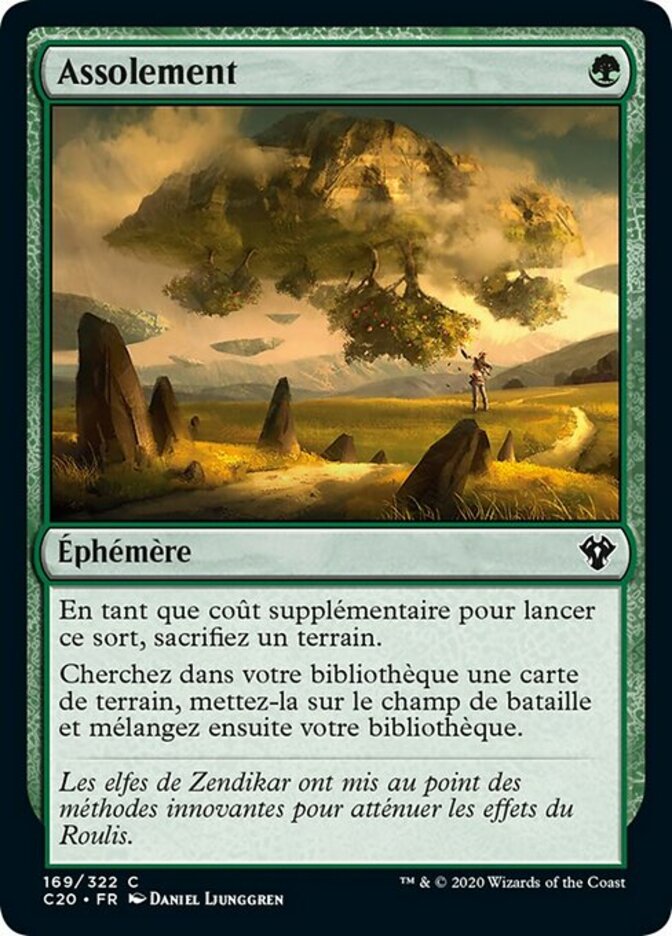 | Rules | As an additional cost to cast this spell, sacrifice a land. Search your library for a land card, put that card onto the battlefield, then shuffle. |