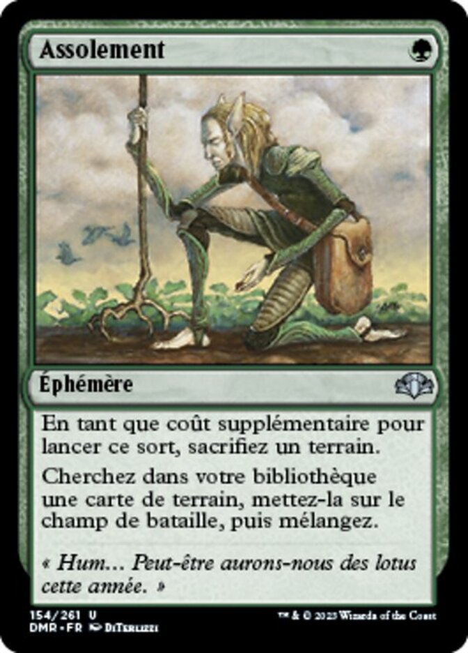 | Rules | As an additional cost to cast this spell, sacrifice a land. Search your library for a land card, put that card onto the battlefield, then shuffle. |