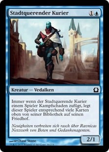 | Rules | Whenever Crosstown Courier deals combat damage to a player, that player mills that many cards. |