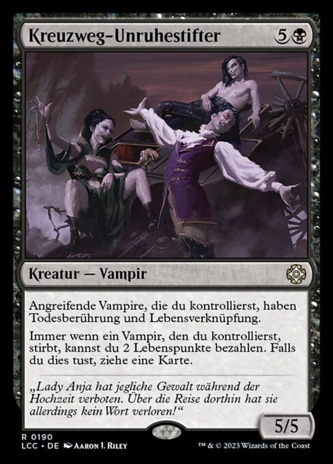 | Rules | Attacking Vampires you control have deathtouch and lifelink. Whenever a Vampire you control dies, you may pay 2 life. If you do, draw a card. |