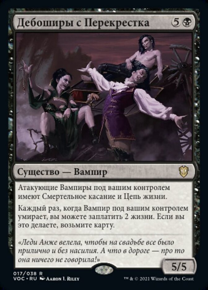 | Rules | Attacking Vampires you control have deathtouch and lifelink. Whenever a Vampire you control dies, you may pay 2 life. If you do, draw a card. |