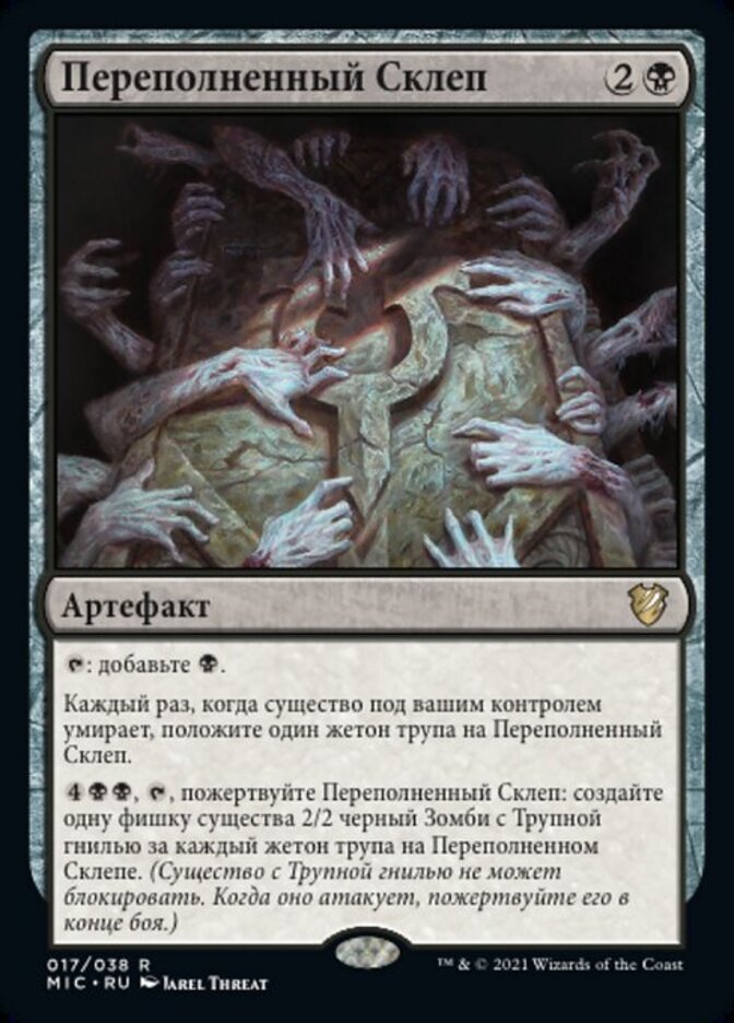 | Rules | : Add . Whenever a creature you control dies, put a corpse counter on Crowded Crypt. , , Sacrifice Crowded Crypt: Create a 2/2 black Zombie creature token with decayed for each corpse counter on Crowded Crypt. (A creature with decayed can't block. When it attacks, sacrifice it at end of combat.) |