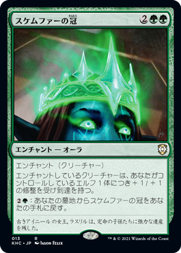| Rules | Enchant creature Enchanted creature gets +1/+1 for each Elf you control and has reach. : Return Crown of Skemfar from your graveyard to your hand. |