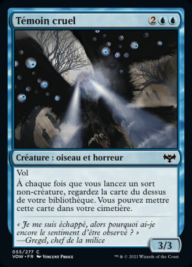 | Rules | Flying Whenever you cast a noncreature spell, look at the top card of your library. You may put that card into your graveyard. |