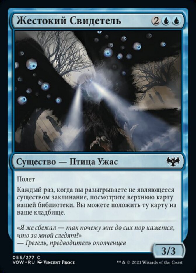 | Rules | Flying Whenever you cast a noncreature spell, look at the top card of your library. You may put that card into your graveyard. |